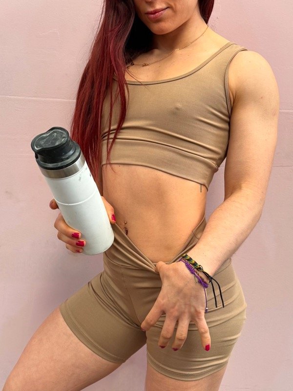 Top deportivo de bretel ancho, con cintura de agarre en bajo busto.