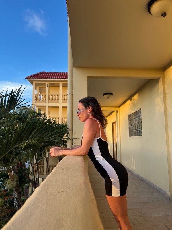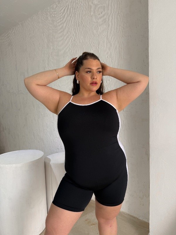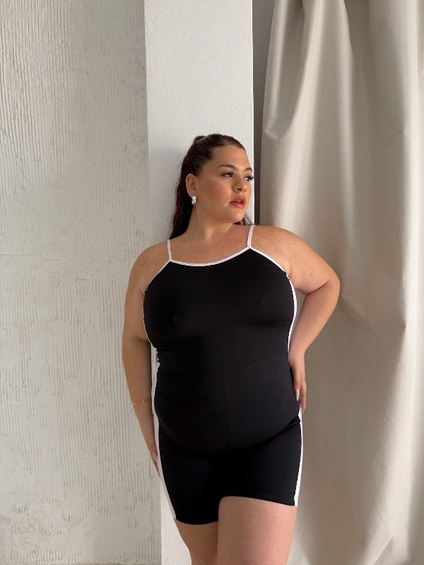 Monoprenda de textil suplex de alta calidad, elasticidad y buen rebote, con detalles en blanco en breteles y franjas laterales que estilizan tu silueta.